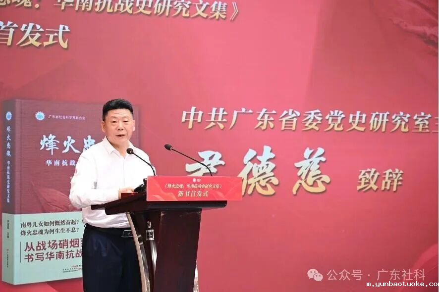 《烽火忠魂:华南抗战史研究文集》凭借鲜明特色与厚重价值,搭建起抗战研究的南方平台,推动华南抗战研究不断迈向新高地,不断在全国抗战史研究领域产生更大影响。李宜航表示,这部文集所彰显的抗战精神,与新时代广东精神高度契合——从当年“敢闯新路”的斗争智慧,到如今“敢为人先”的改革气魄;从当年“团结一切力量”的统战理念,到今天“聚天下英才而用之”的开放胸怀,红色基因始终是推动广东发展的“精神密码”。